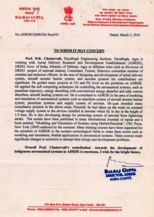 - Prof. Chaturvedi successfully completed two terms as council member of Aeronautical society of India, Agra Chapter, ADRDE, Agra in May 2011.