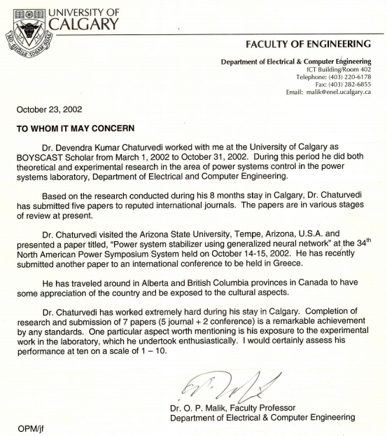 Post Doctoral research, University of Calgary, AB, Canada, March 1