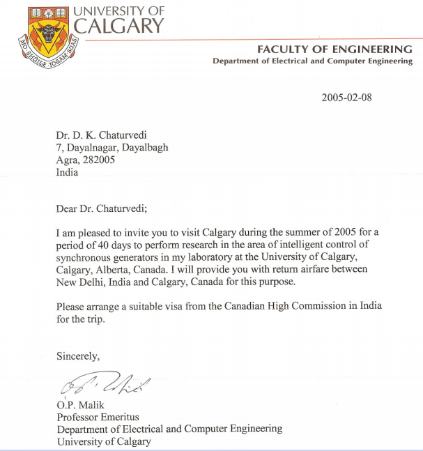 Visiting Fellow to University of Calgary, AB, Canada, May 24th, 2005 to June 28, 2005 and May 22nd, 2007 to July 28, 2007.