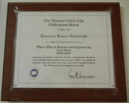 Name included in Marquis Who"s Who in World – 2006-2007.